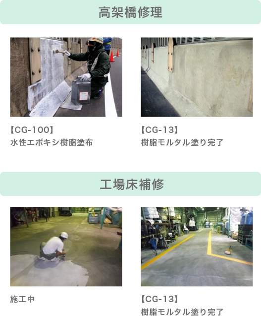 ・GC-13と清水を1:1の割合で混合し、モルタルの混和水として、樹脂モルタルとして使用しても